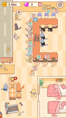 3. Soothing soundtrack🎶 and cute animated cats🐱 that bring your perfect cat hotel's atmosphere to life.